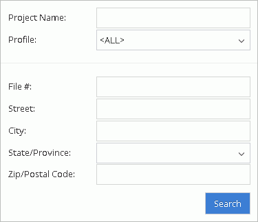 Just enter the search criteria in any of the fields or combination of the fields and click on the Search button or hit <Enter>. The project list will now show only the project(s) that match all of the criteria entered and the search field will be populated with the text from the advanced search. To edit the current advanced search, click in the Advanced Search field, and the search will reopen and you can then modify the advanced search criteria. If you wish, you can also just enter the advanced text search manually into the search field. In order for manual entry to function correctly, the text search code must be entered using the correct syntax.
