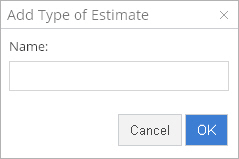 After any changes are made, if you click the Cancel button, the Edit Type of Estimate pop-up will close, and nothing will be changed. If you click the OK button after making changes, the Edit Type of Estimate pop-up will close, and changes to the Name will be saved.