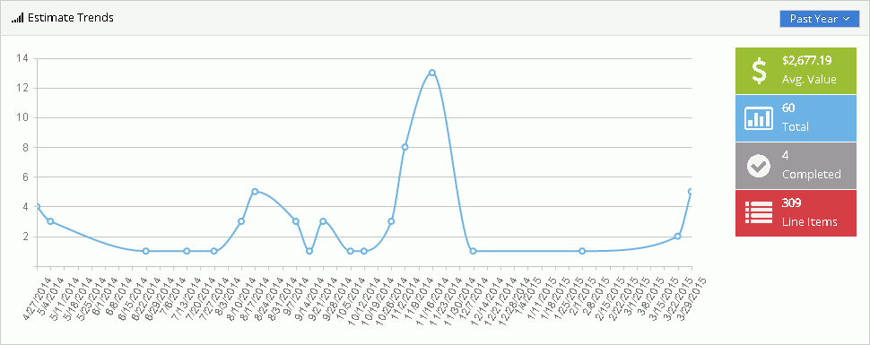In the Estimate Trends section, you can view a graph of projects filtered by the selected time period, to display the projects created in that time period.
